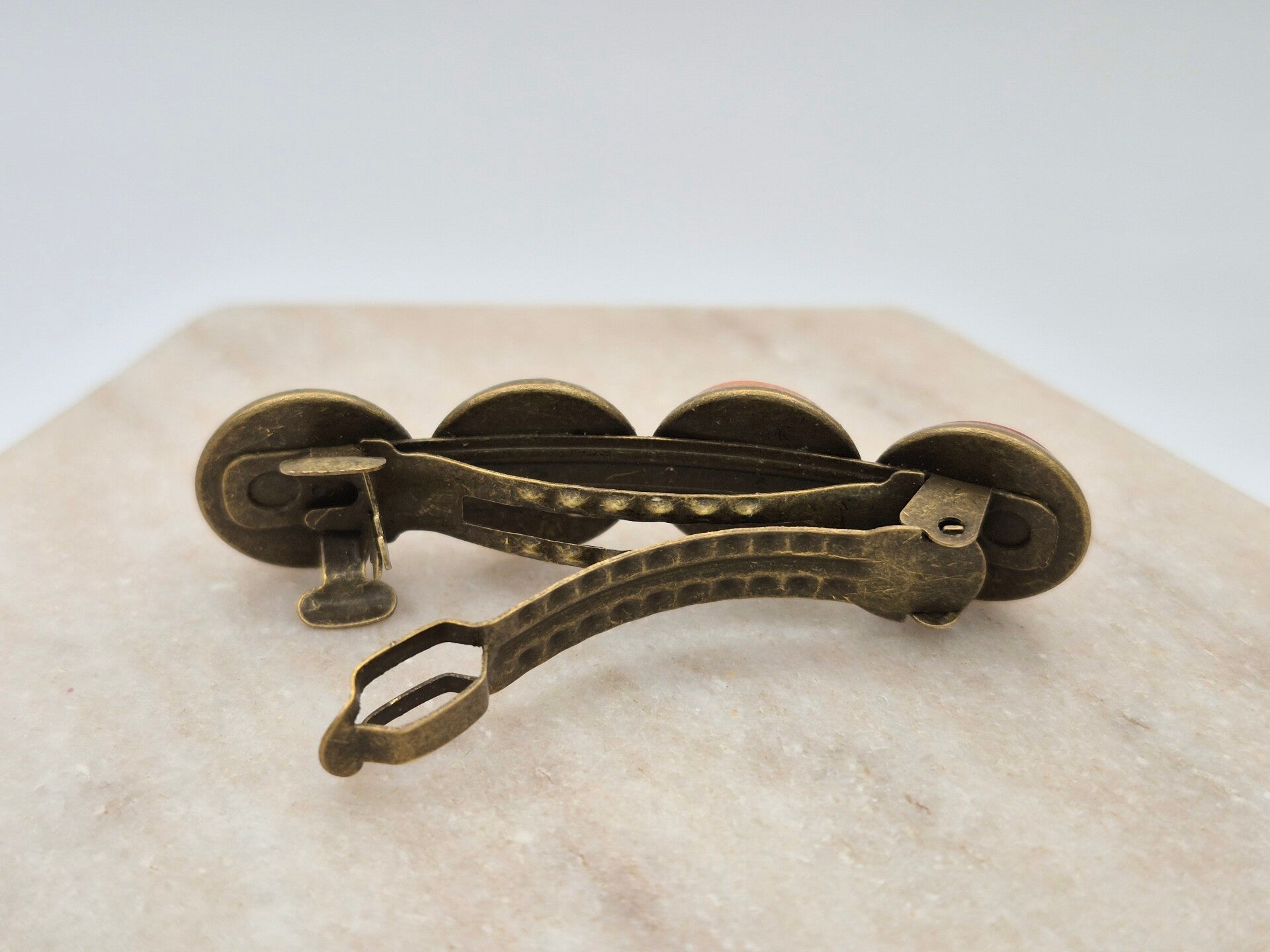 Haarspeld met 4 verschillende rondjes polymeerklei met een laagje resin.