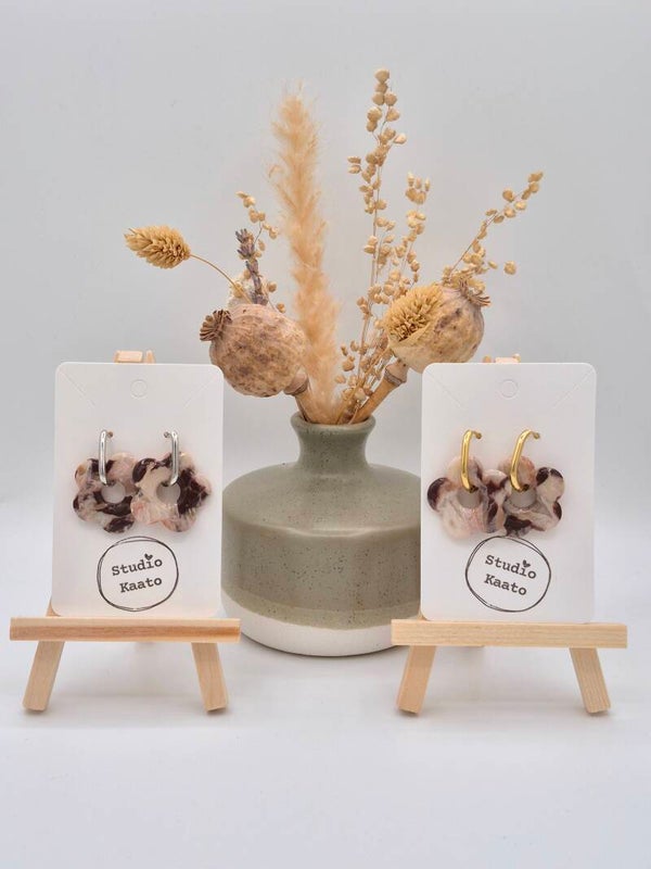 Mijn oorbellen zijn met veel zorg en liefde gemaakt van polymeerklei. Ze zijn allemaal zeer licht van gewicht en dragen daardoor heel prettig. De oorbellen zijn allemaal van stainless steel, nikkelvrij en hypoallergeen.