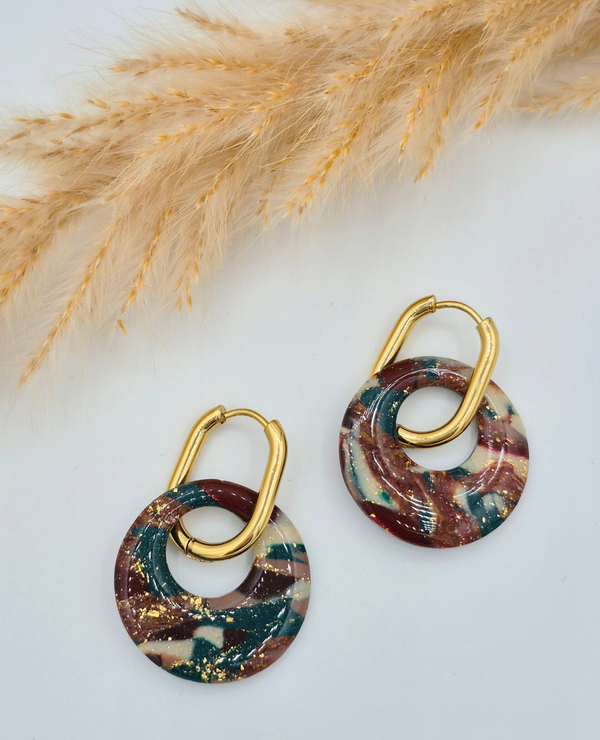 De ringetjes zijn in zowel goud als zilverkleurig beschikbaar. Omdat er in de klei al bladgoud zit, zijn gouden ringetjes het best bijpassend in dit geval Je wens voor zilver kun je uiteraard altijd aangeven in het bestelproces.
