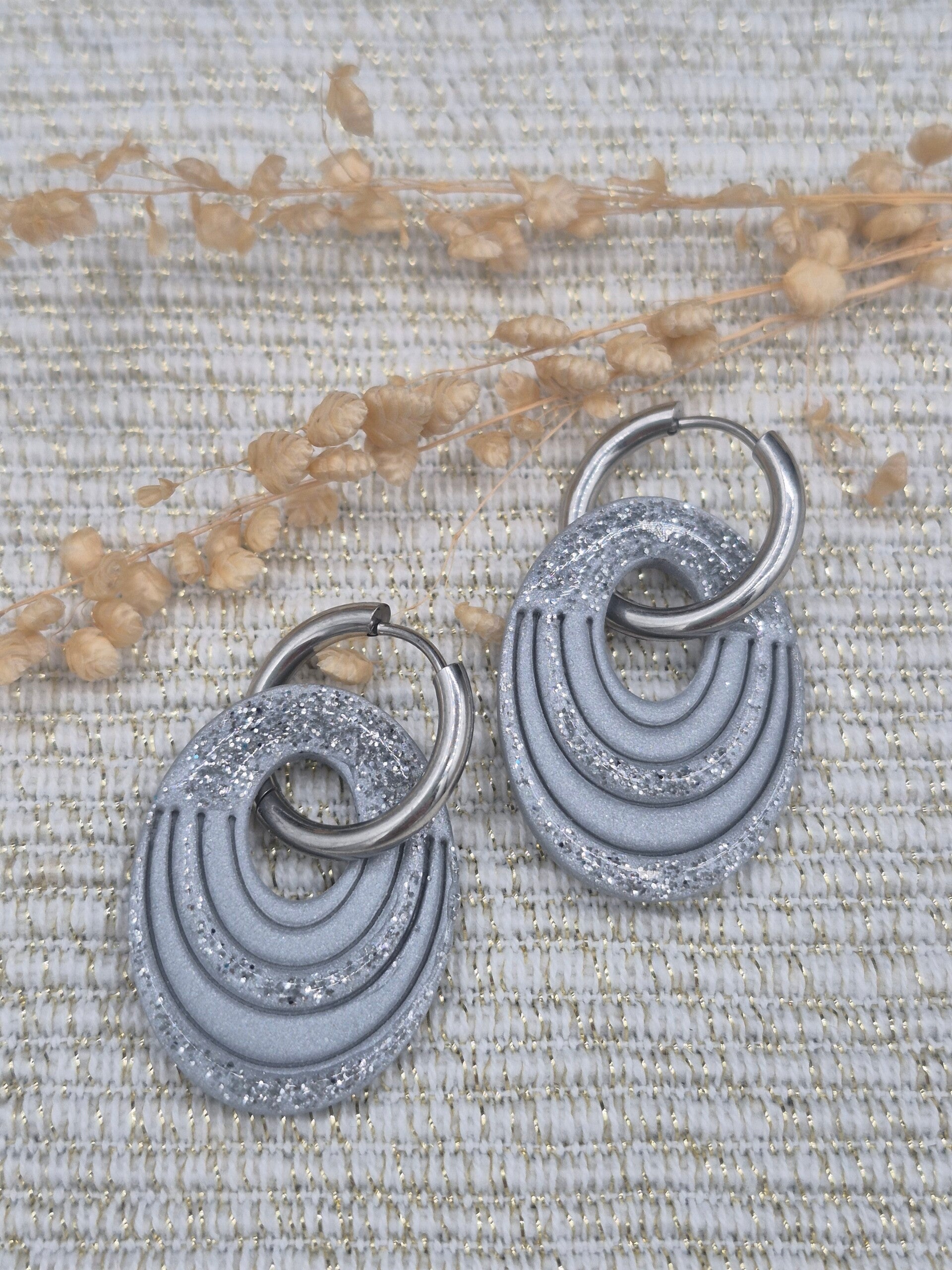Kleur: zilver parelmoer met een laagje resin met zilverglitter.