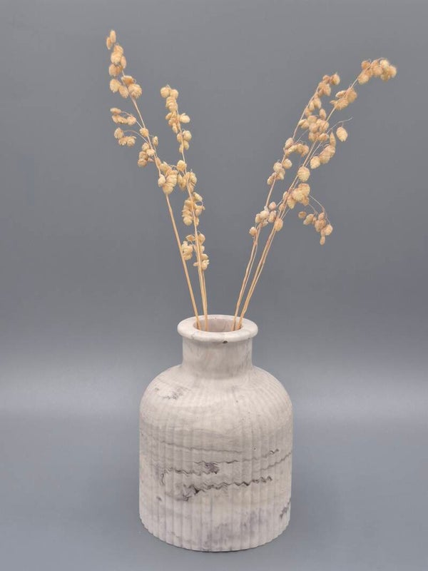 Geribbeld vaasje gegoten van epoxy giethars. Geschikt voor (droog)bloemen of een dinerkaars.