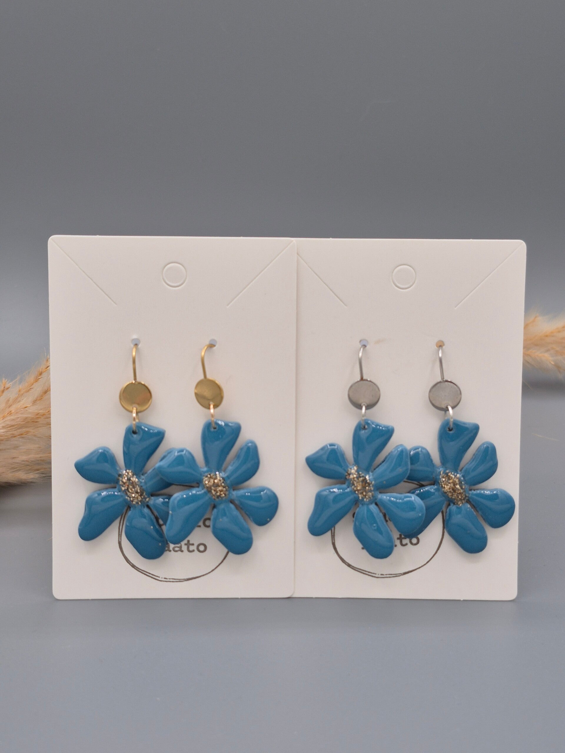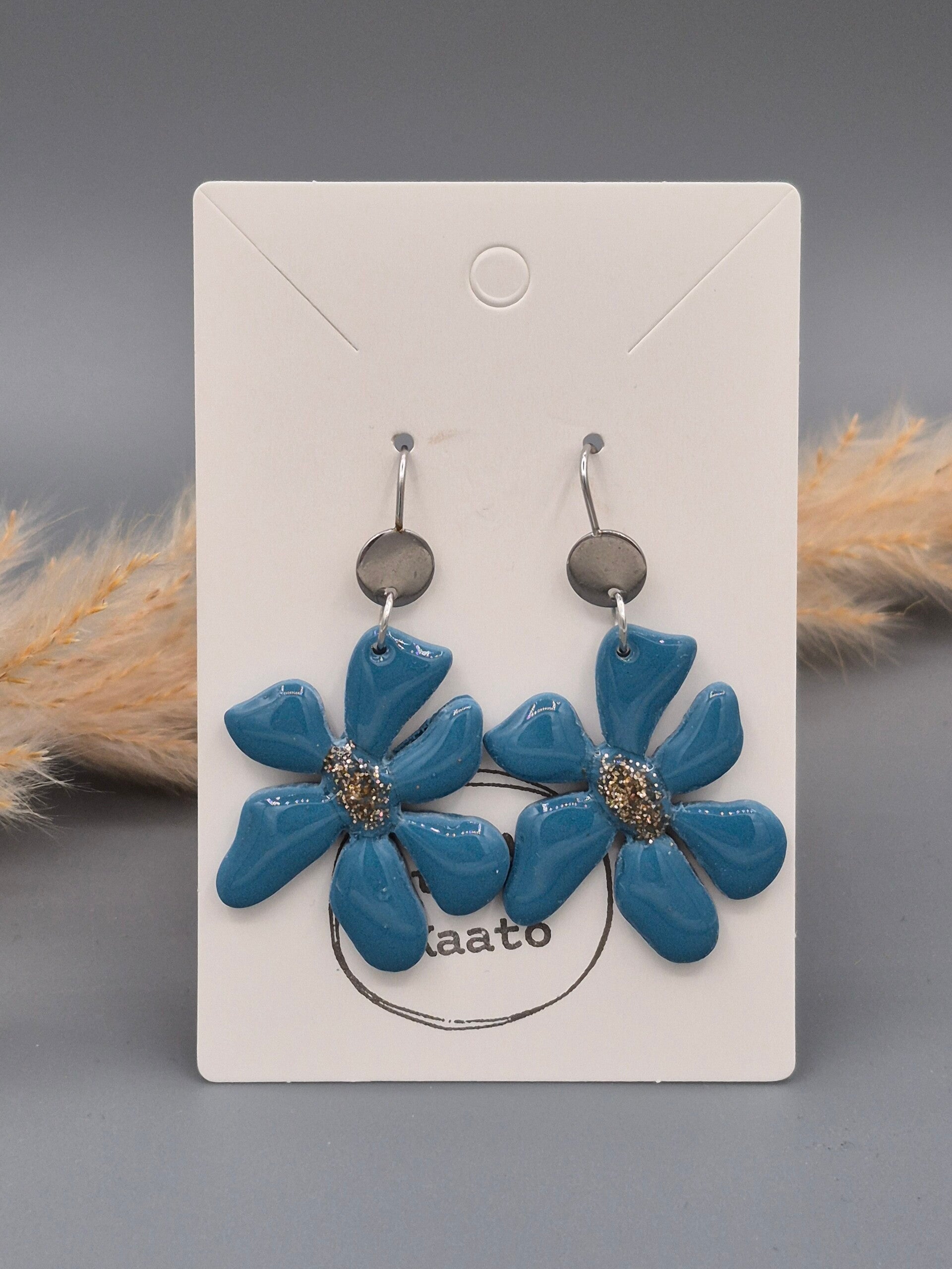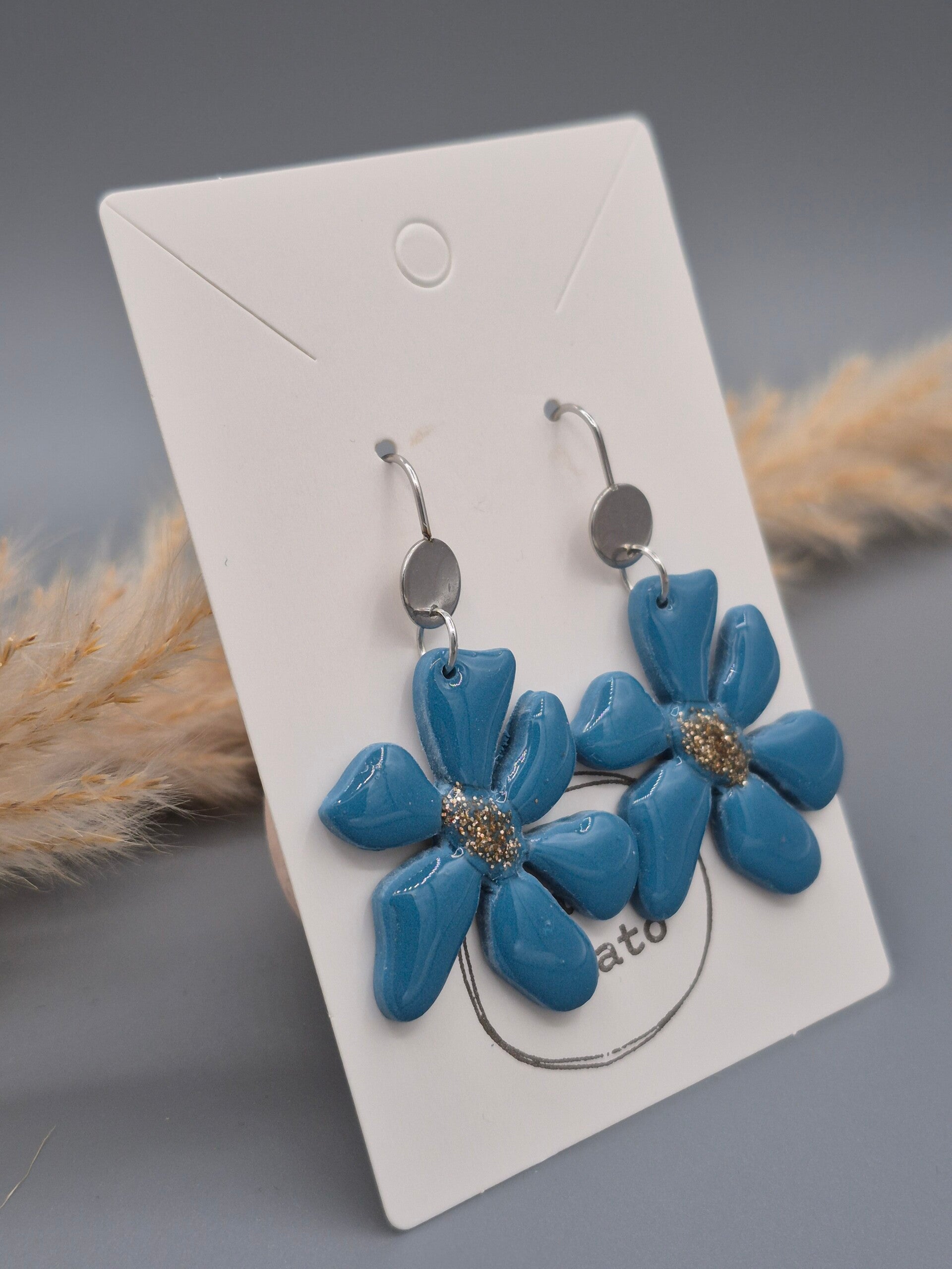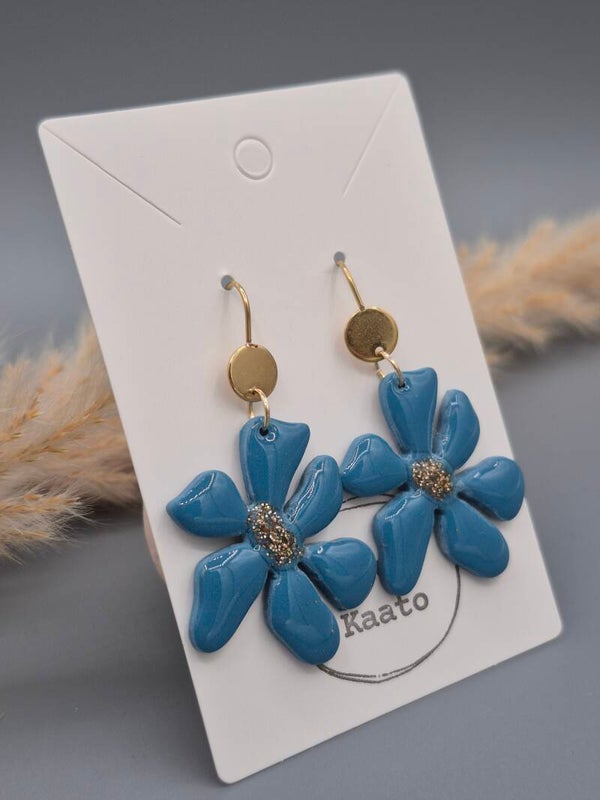 Kleur: blauw. Voorzien van een glanslaagje. In zowel een zilveren als gouden oorhaakje. Geef dit svp aan bij je bestelling.