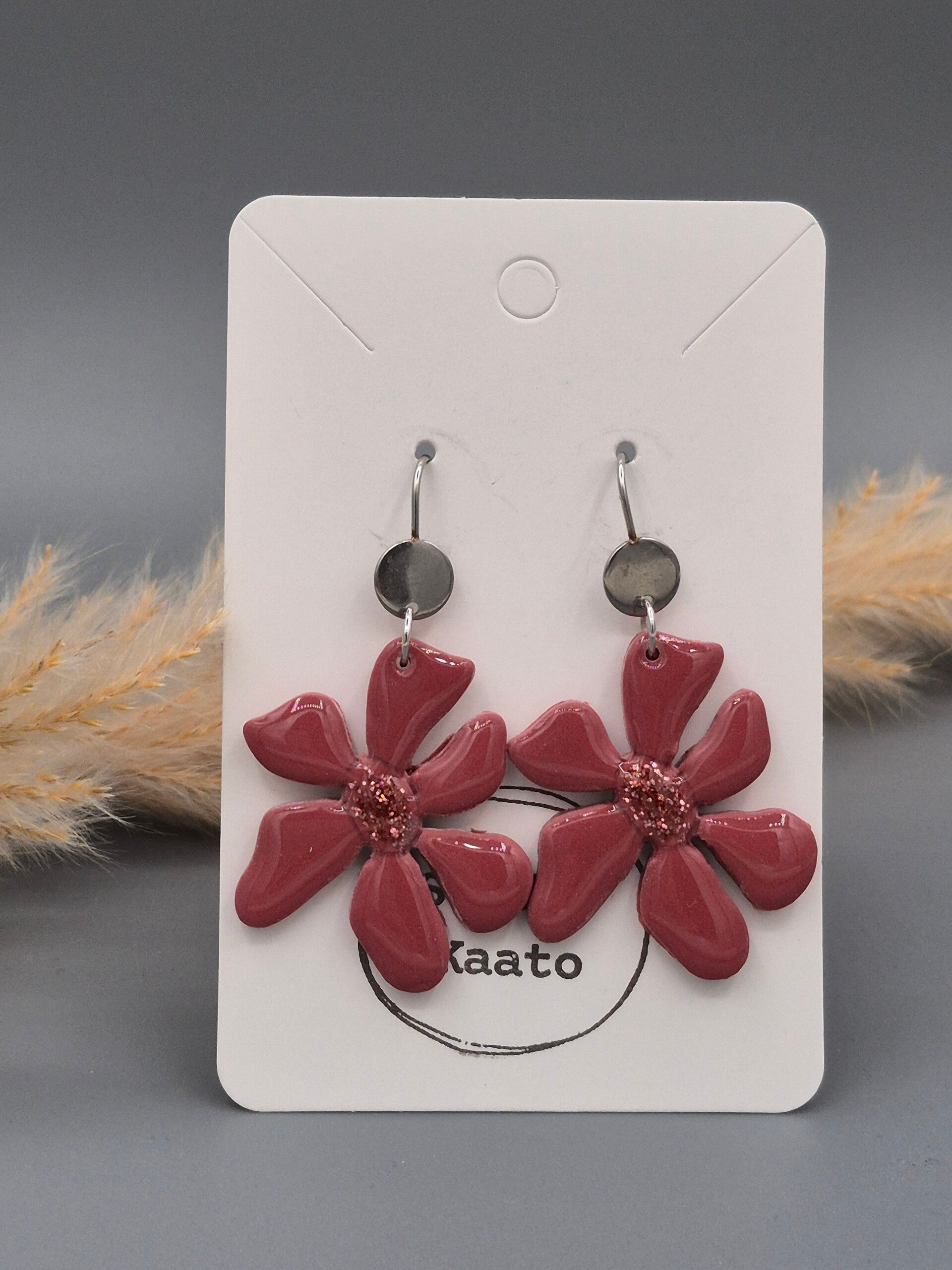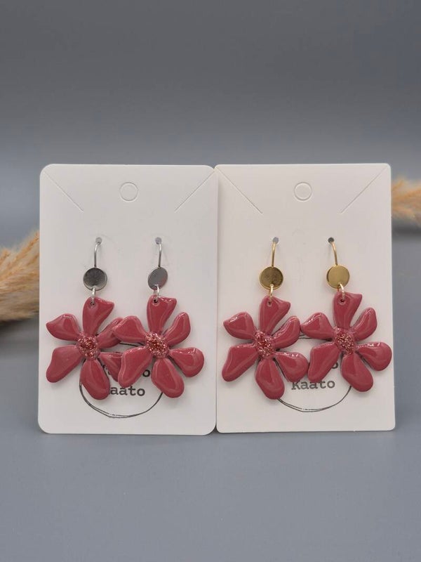 Kleur: warme roze/rood tint. Voorzien van een glanslaagje. In zowel een zilveren als gouden oorhaakje. Geef dit svp aan bij je bestelling.